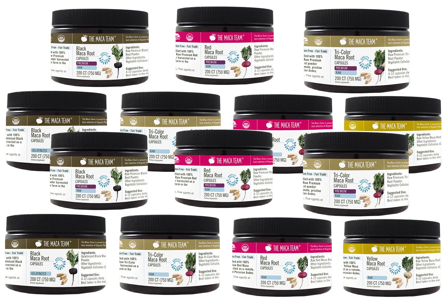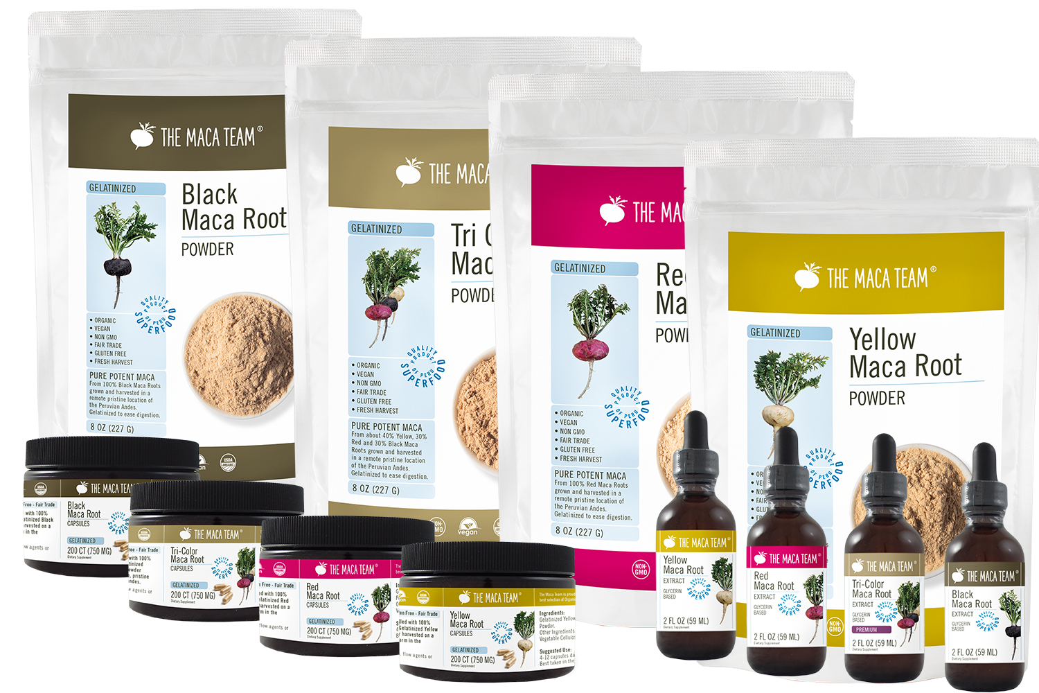 These are our proprietary superfood blends. They contain our maca root powder along with other life enhancing superfoods. Each blend is 100% unique and available only from The Maca Team.